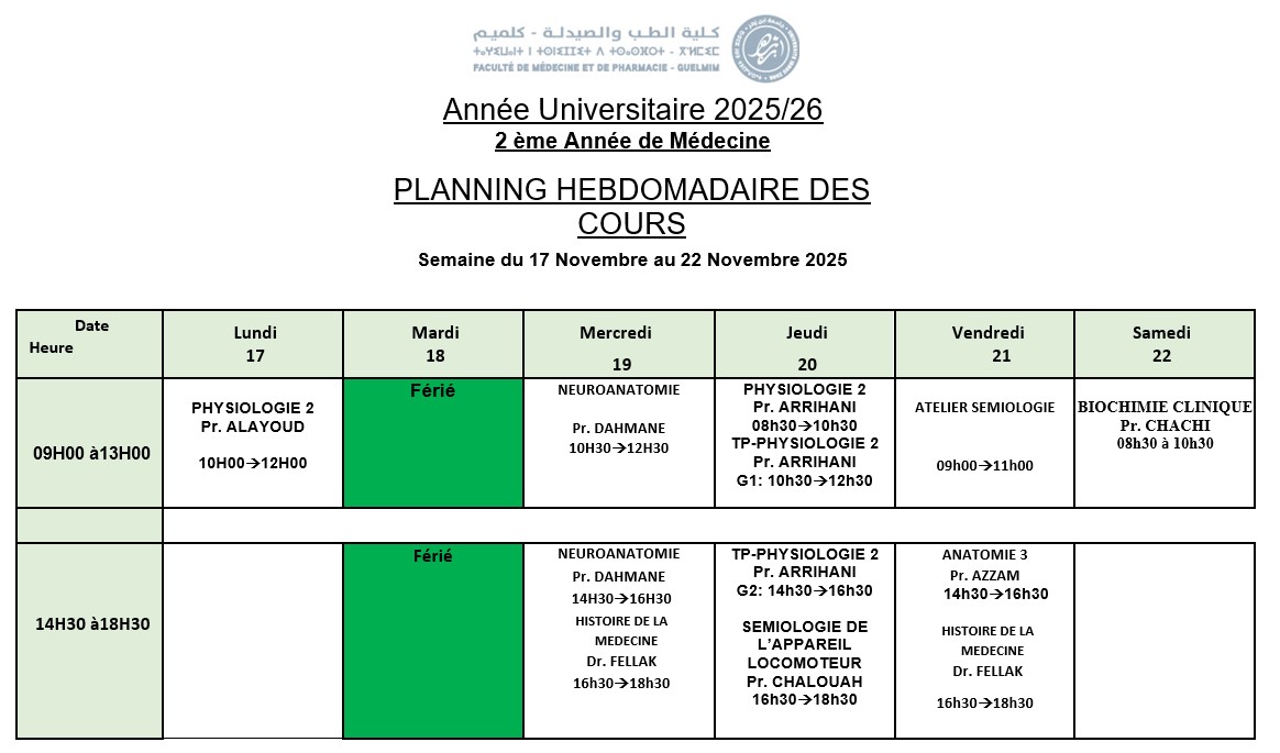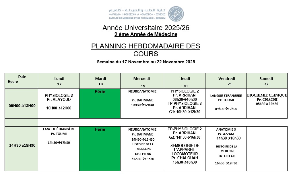 By administrator 15 novembre 2025 No Comments PLANNING HEBDOMADAIRE DES COURS S3 FMPG du 17 NOV au 22 NOV