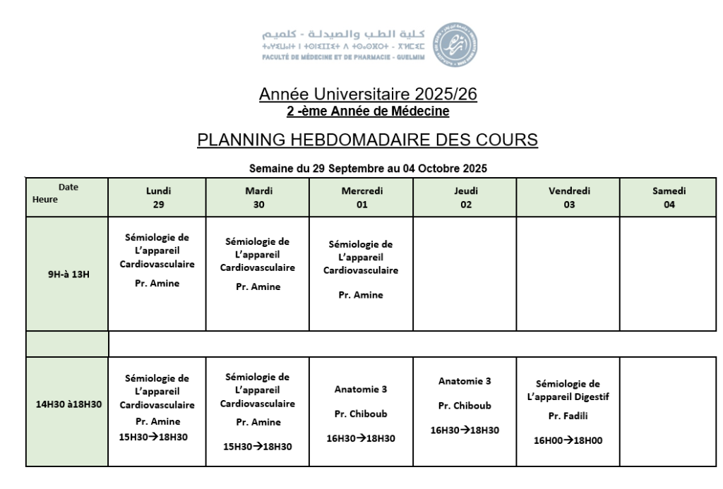 By administrator 30 septembre 2025 No Comments PLANNING HEBDOMADAIRE DES COURS S3 FMPG du 29 SEP au 04 OCT